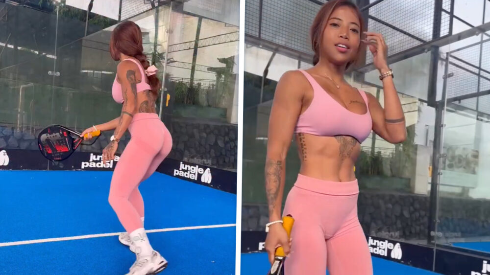 Lily Brown buigt, draait en klapt zichzelf sneller dubbel dan een goedkoop klapstoeltje uit de schuur. De slangenmens slash fitgirl besluit even te demonstreren hoe soepel ze werkelijk is, en voordat je met je ogen kunt knipperen ligt ze in een positie waar wij maanden fysiotherapie voor nodig zouden hebben. Poeh, die tennisbal was bijna foetsie!