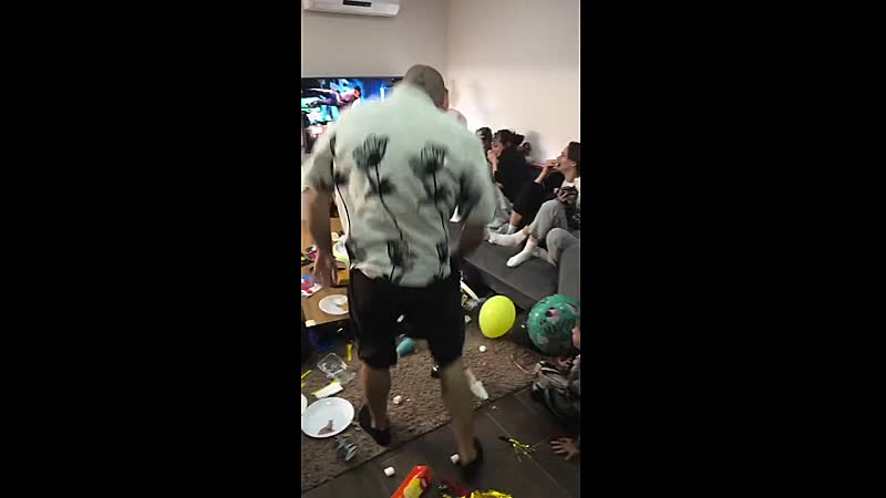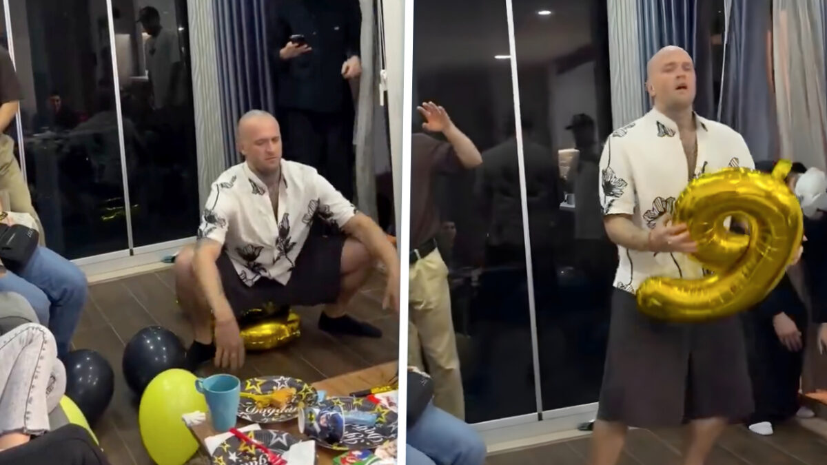 Een verjaardagsfeestje voor je kleine neefje, daar hoort natuurlijk ballonnen, taart, en slingers bij. Maar deze keer was er ook een bijzondere gast aanwezig. In de video valt meteen een man op die er wel héél anders uitziet dan de rest van de feestgangers. Hij lijkt compleet in een eigen wereld te zitten. We betwijfelen of dit komt door een simpele goudgele kletser en een blokje kaas.