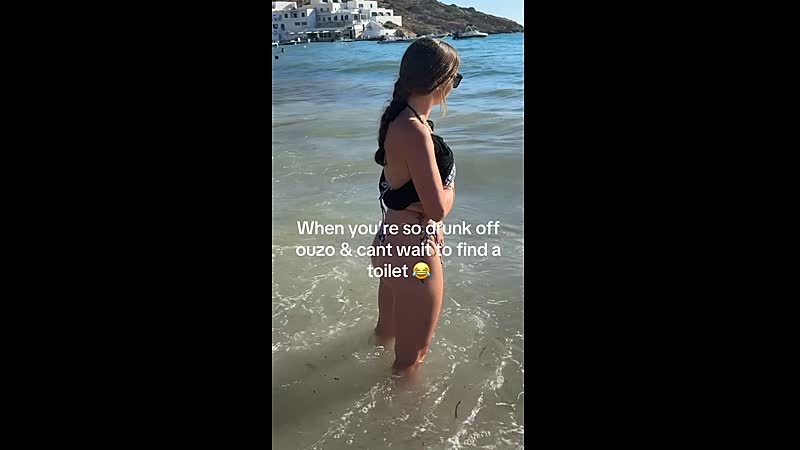 Een meisje, duidelijk iets te goed bevriend met Ouzo, besluit dat de oceaan niet alleen geschikt is om te zwemmen, maar ook om te.. nou ja, je weet wel. Terwijl andere mensen zich tegoed doen aan zwemmen en surfen, staat zij daar—met een brede glimlach en een wankele houding, te plassen. De Ouzo doet zijn werk.
