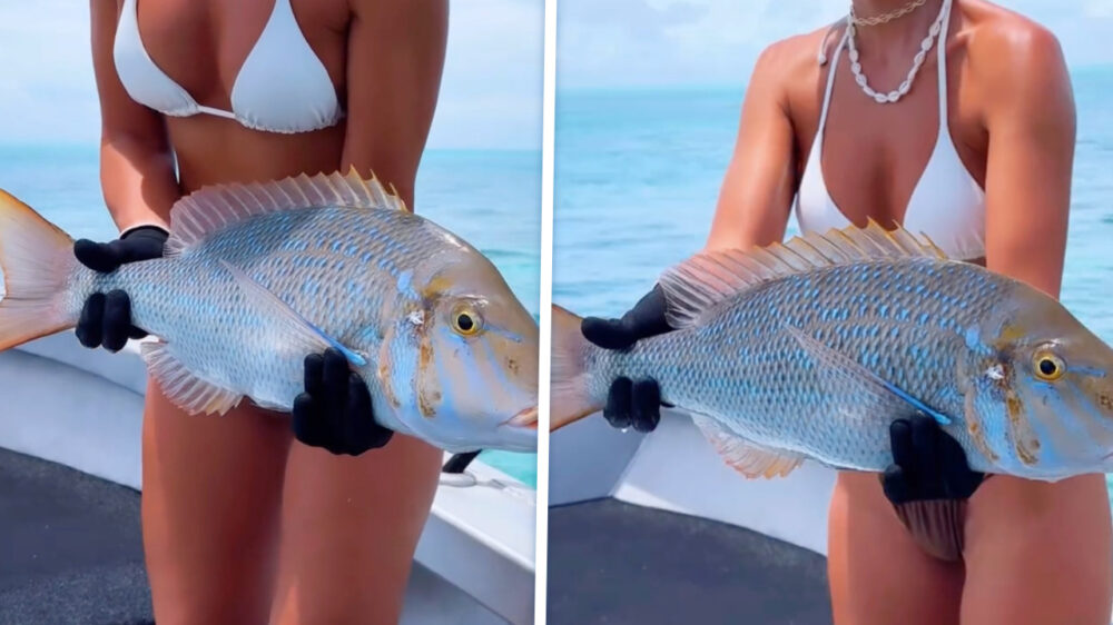 Ze vangt een dikke vis, maar het internet kijkt weer eens naar… iets anders