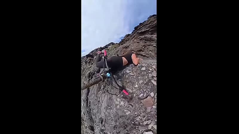 De beelden vanaf de helm-camera laten zien hoe ze geconcentreerd over de smalle rand rijdt. Het is een haarbreed verschil tussen doorgaan en vallen. Elke beweging moet precies kloppen, want één misstap betekent een vrije val.