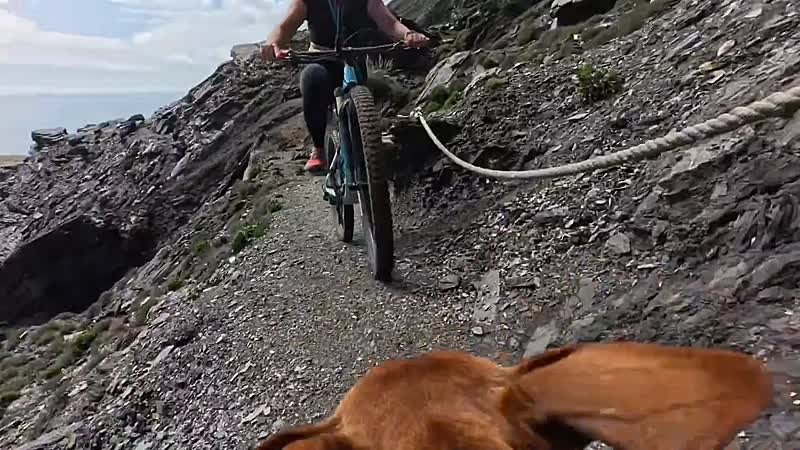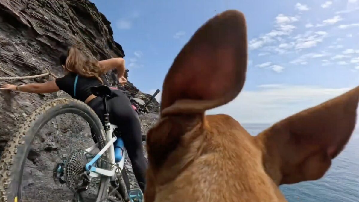 Wat een rit! Een dappere fietser waagt zich op een enorm dunne klif, en het gaat bijna mis… maar gelukkig is alles vastgelegd. Zowel vanuit haar eigen camera als het hilarische perspectief van haar trouwe hond.