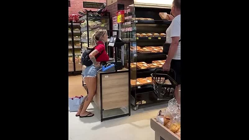 Ze leunde er lekker casual op, terwijl een andere klant rustig tussen de taartjes stond te kiezen. Geen idee of hij er ook een extra boodschap van maakte, maar hij dacht vast: "dit stond niet in mijn boodschappenlijstje, maar ik neem het graag mee naar huis."