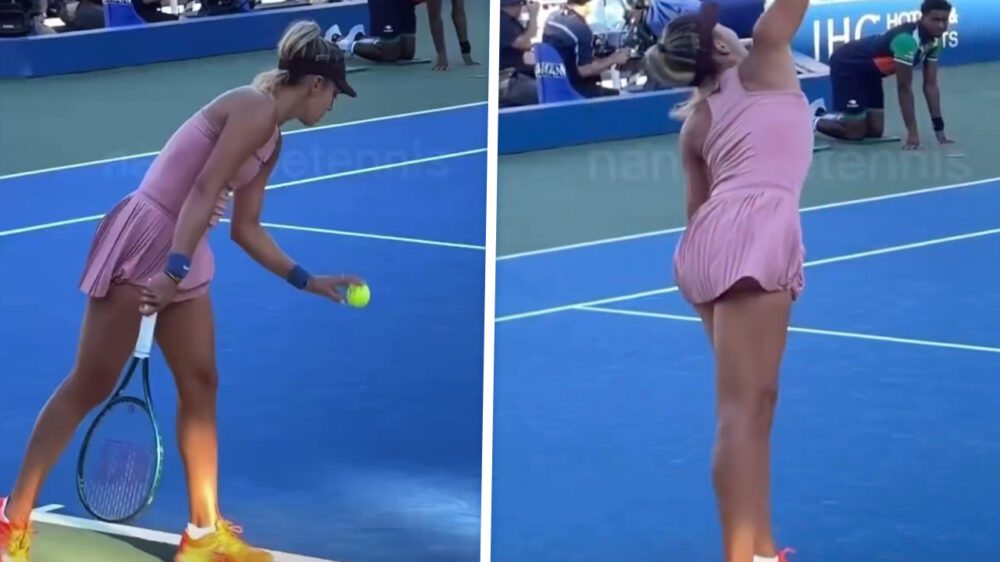 Tennis: een sport vol precisie, kracht en techniek. Neem bijvoorbeeld deze tennisster. Ze serveert zoals je het al duizend keer hebt gezien: bal omhoog en volle focus. Maar haar outfit had duidelijk andere plannen. Tijdens haar service krijgen kijkers ineens een ongeplande blik op haar achterwerk.