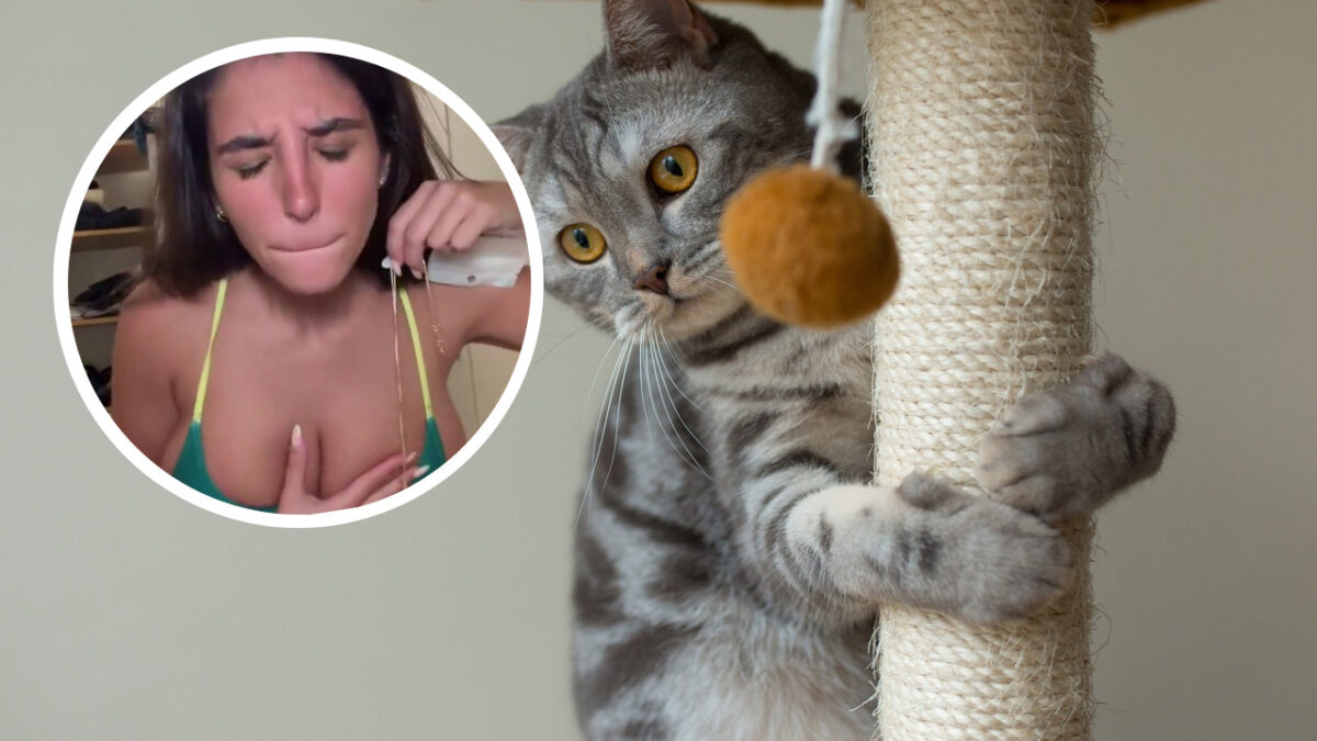 Vrouw verandert in krabpaal als haar kat vol in d'r melkflessen grijpt
