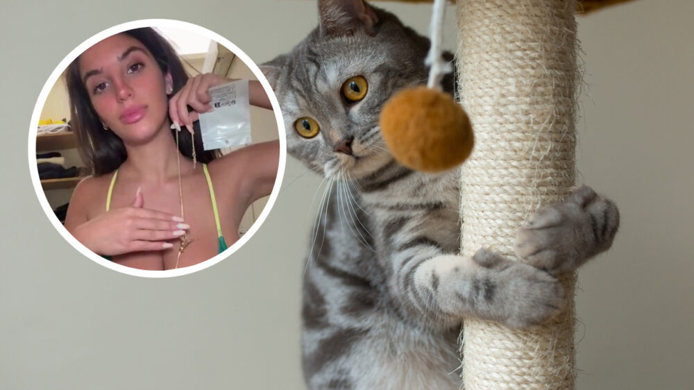 De talentvolle Ika D’Auria probeert even subtiel haar sieraden te flexen, maar haar kat heeft duidelijk andere plannen. Die ziet geen influencer, maar een bewegende krabpaal met bonuspunten.