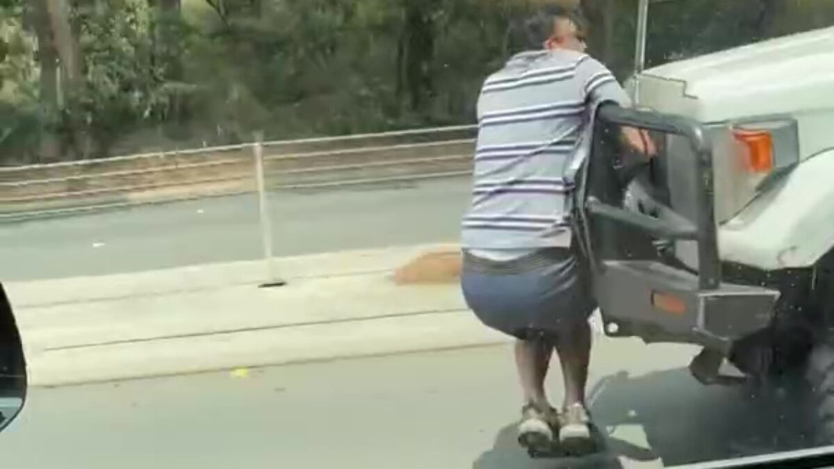Naar verluidt was de bestuurder betrokken bij een ongeluk en probeerde de bullbar-hanger hem tot stoppen te dwingen. Dit lukte hem pas kilometers later.