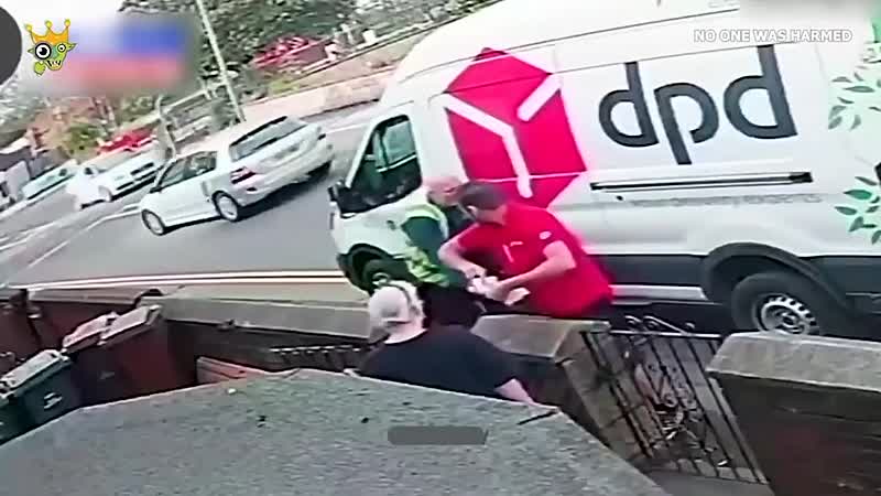 Die bezorger laat uiteraard weten dat hij niet zit te wachten op dit soort ongewenste knuffelmomentjes. Iets wat de fietser niet zomaar laat lopen, want die draait nog even om voor een tweede rondje aandacht.