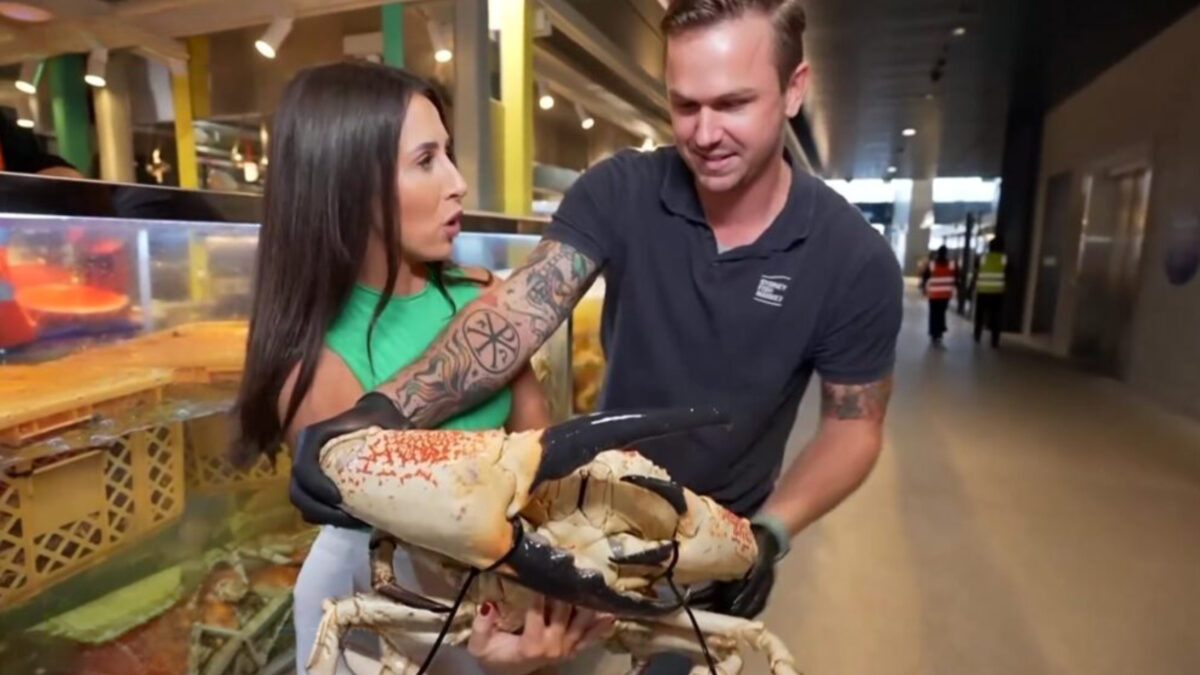 Taylor Haynes kreeg een van de duurdere zeevruchten in handen: een grote oranje krab met flinke scharen. Ze schrok van het beest, maar pakte het dier toch op.