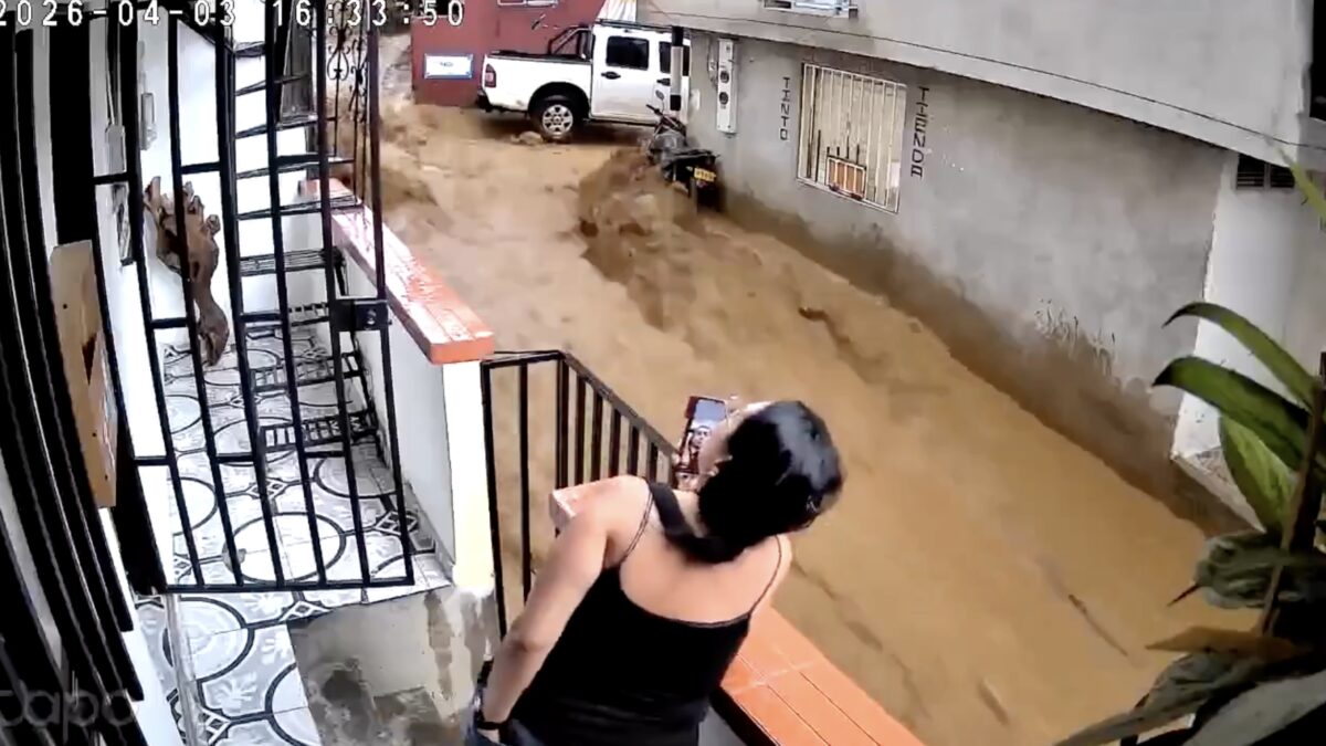 Sommige mensen raken volledig in paniek als het water tot aan de lippen staat, maar deze Colombiaanse tante blijft er ijzig koud onder.