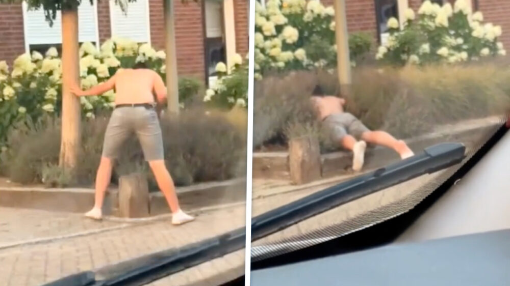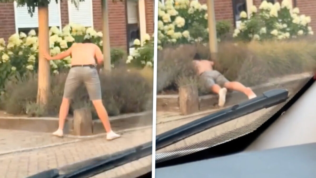 De buurman heeft blijkbaar de memo gemist dat de voortuin geen slaapkamer is en besluit op de meest ongemakkelijke manier denkbaar te parkeren.