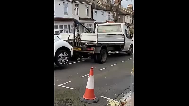 Takelterrorist veroorzaakt chaos met bungelende Beetle achter sleepwagen Fails