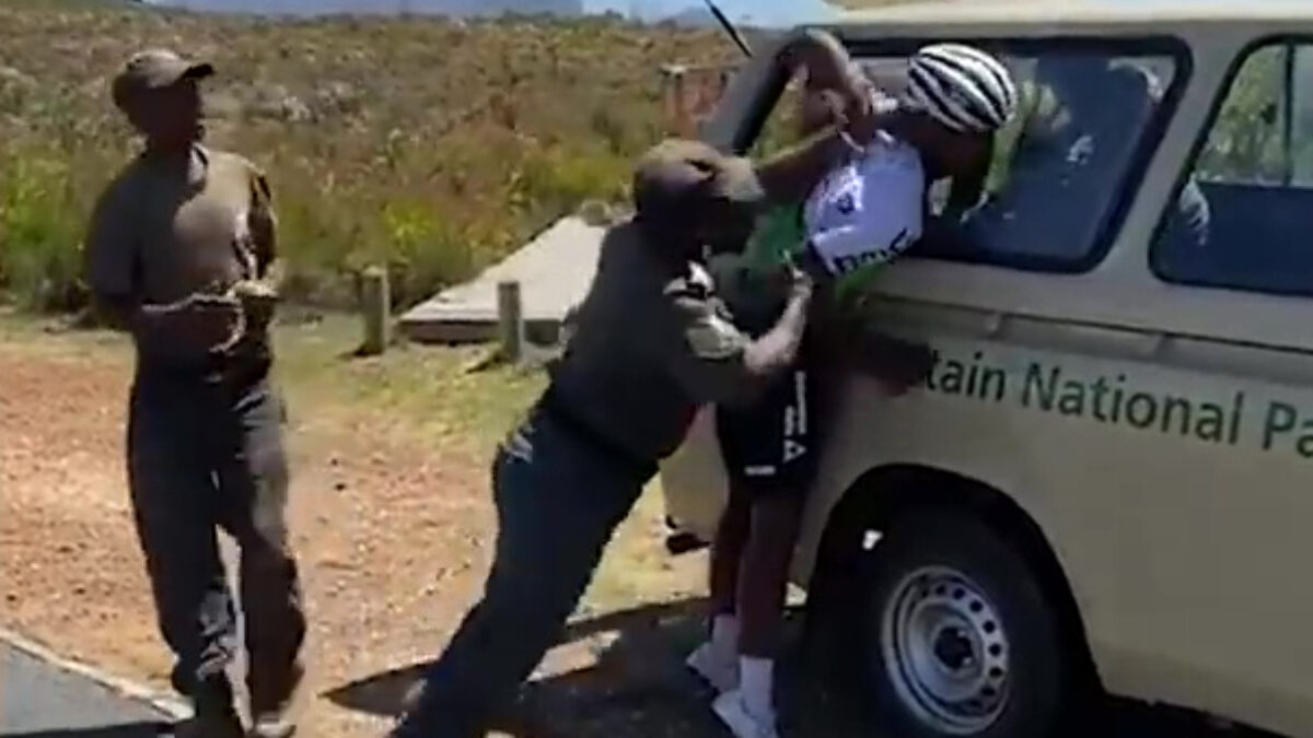 Zuid-Afrikaanse politie bezorgt profwielrenner Nic Dlamini een gebroken arm Bizar