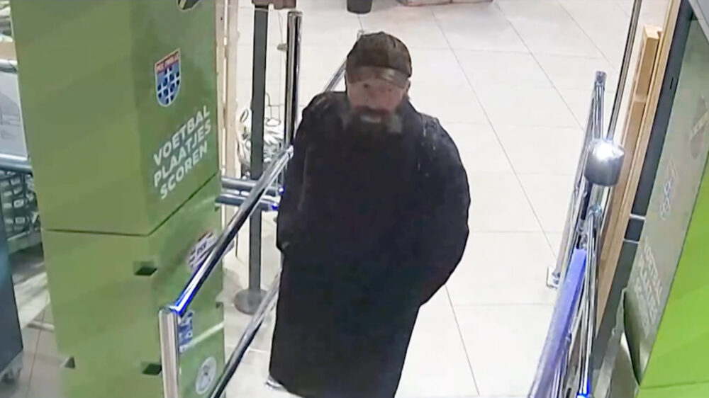 De politie zoekt dringend naar een man met een baard, een lange jas, een pet en een rugzak. In de video bij het bericht zijn de beelden te zien waarop hij het voorwerp achterlaat in de supermarkt.
