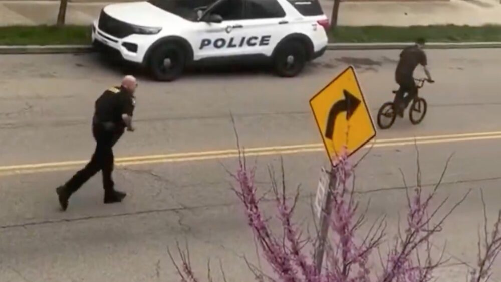 In Cincinnati dacht een agent even een simpele arrestatie te doen, maar dat liep uit op een soort live demonstratie “hoe word ik géén agent van de maand”. De diender probeert een fietser te tackelen, gooit er nog wat pepperspray tegenaan voor de show, maar wordt vervolgens zelf netjes tegen het asfalt gewerkt.