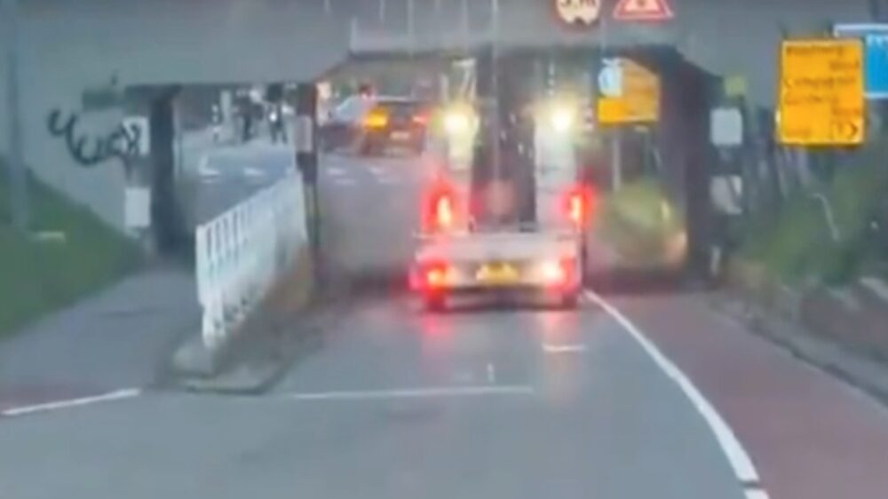 Chauffeur gaat met volle overtuiging een tunnel in die duidelijk te laag is