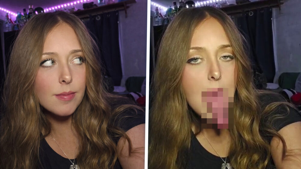 Op het eerste gezicht gewoon een dame zoals zovelen, maar wacht tot ze haar smoelwerk opentrekt.
