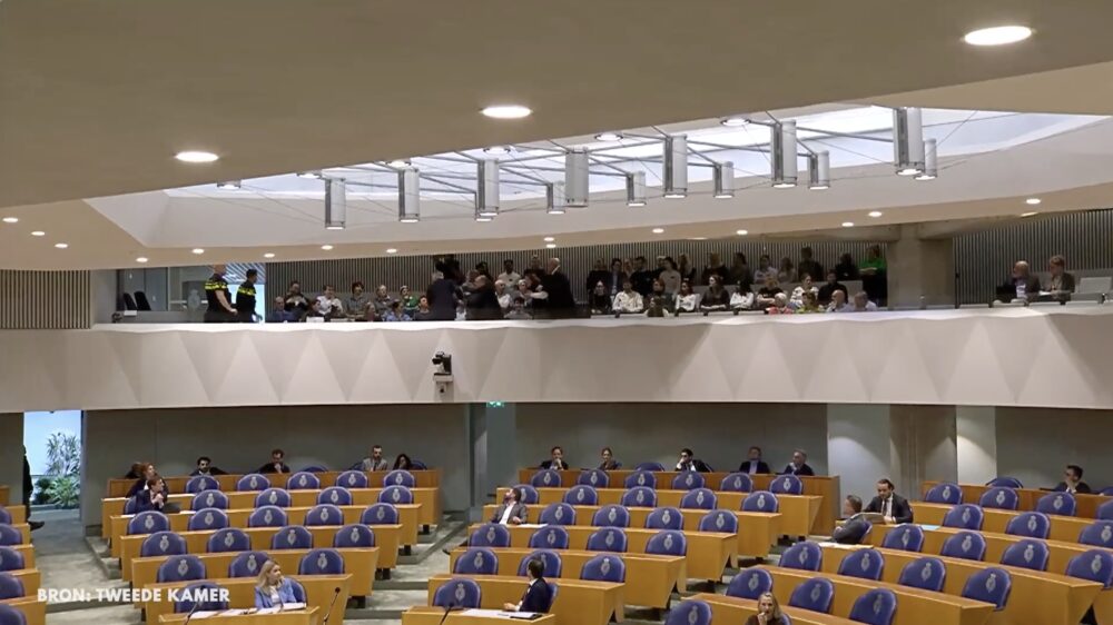 Een debat in de Tweede Kamer over de situatie in het Midden-Oosten is donderdag drie keer onderbroken door betogers die opkomen voor Palestijnen. Voorzitter Thom van Campen liet na de laatste verstoring de publieke tribune ontruimen.