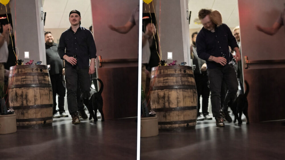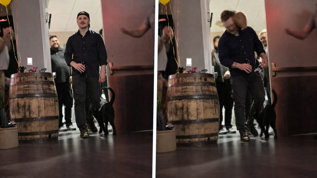 Leuk man zo'n surprise party. Beetje slingers, biertje erbij en klaar. Maar deze jarige job krijgt geen verjaardagsliedje, hij wordt opgewacht door een stelletje terroristen. Taarten vliegen hem om de oren en landen stuk voor stuk vol op z’n smoel, zo hard dat je bijna wacht tot hij achterover klapt. Gefeliciteerd pik, geniet van je feestje!