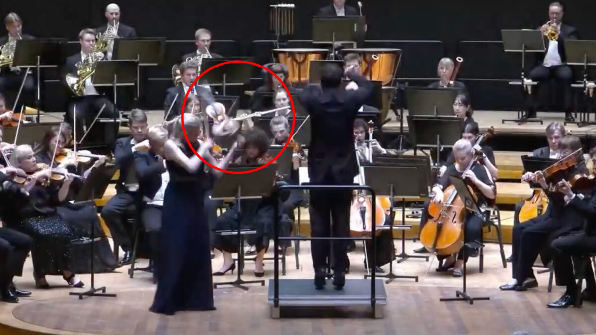 Tijdens een concert in Finland ging het niet helemaal lekker nadat een dirigent iets té enthousiast stond te zwaaien. Voor hij het wist, maaide hij met zijn stok de peperdure viool uit de handen van de solist.
