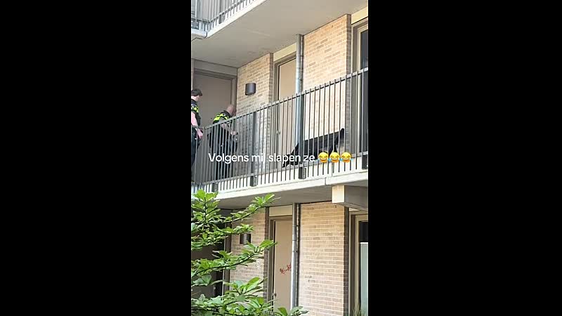 Terwijl de agenten met man en macht (en een ram) proberen binnen te komen, besluit de buurman de situatie nog even extra pijnlijk te maken met een gortdroge opmerking. Even genieten van dit staaltje Nederlands vakmanschap.