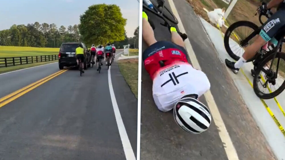 In Amerika hadden een paar wielrenners vorige week een dag om snel te vergeten. Terwijl ze dachten gezellig een rondje te fietsen, veranderde een bestuurder de situatie in een scene uit Mad Max. Geen waarschuwing vooraf, gewoon lekker gas geven en de sportievelingen van de weg drukken. We denken er allemaal weleens aan, maar het doen is een tweede. Zo slaat het dagje om van een rondje fietsen in de 'natoer', naar overleven op de weg.