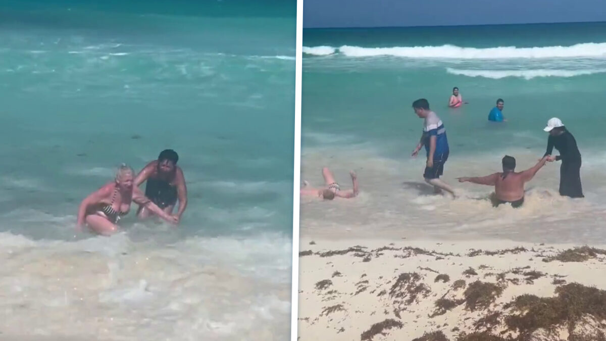 Aangeschoten dames trotseren de zee, maar houden amper hun bikini aan
