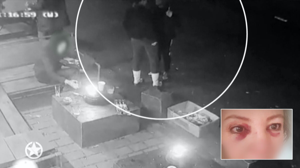 De vrouw liep twee blauwe ogen, een dikke neus en een mogelijke hersenschudding op, meer info vind je hier.