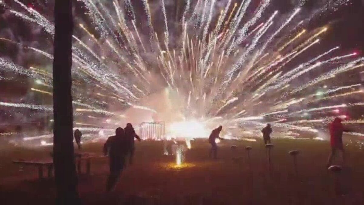 Dat niet iedereen het bij een sierpakketje van de Aldi houdt is algemeen bekend. Sommige liefhebbers rammen enorme stukken vuurwerk de lucht in, of in dit geval de speeltuin. Of dit helemaal de bedoeling was betwijfelen we, maar hey, het ziet er in elk geval indrukwekkend uit!