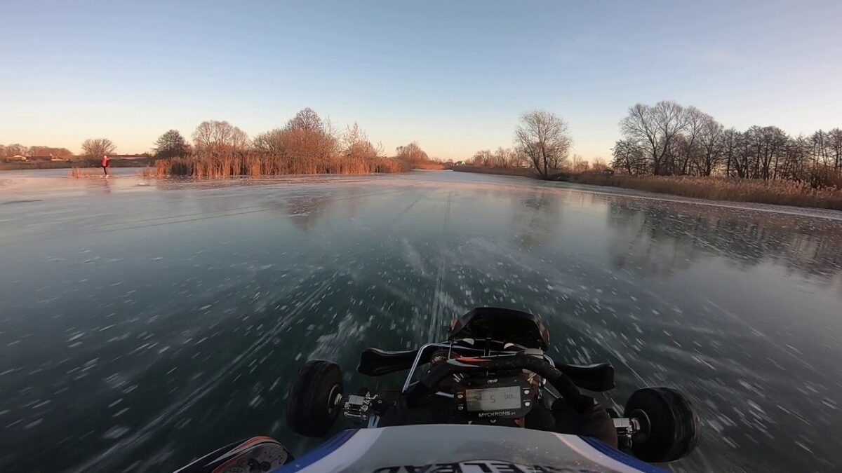 Keihard met je kart over het ijs raggen ziet er gruwelijk vet uit