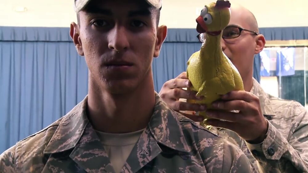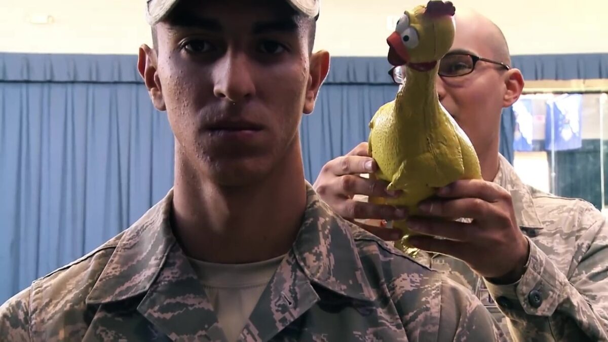 Tijdens je werk als 'Honor Guard' of als politieagent is het natuurlijk zaak om niet in de lach te schieten en altijd serieus te blijven. Hoe train je zoiets? Simpel, met een rubberen kip, zoals uit deze oudere video's blijkt.