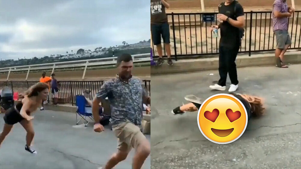 Wedstrijdje hardlopen eindigt met een wardrobe malfunction en een buikschuiver over het asfalt Fails