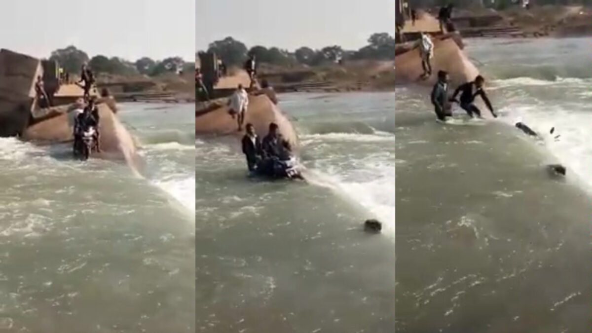Met een motor de stromende rivier oversteken loopt precies af zoals je verwacht Fails