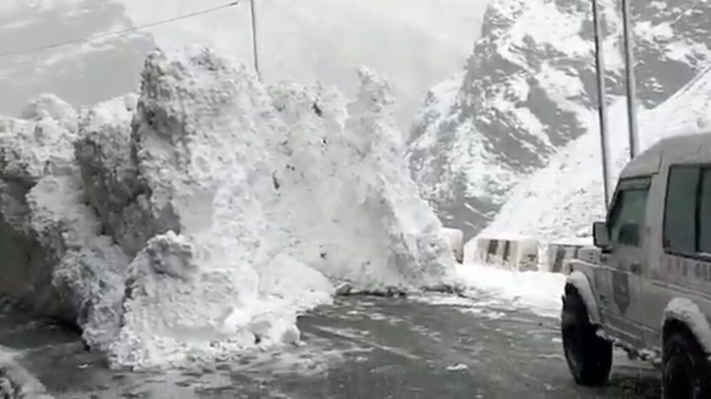 Lawine schuift langzaam de weg over na dikke sneeuwval in India