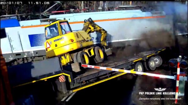 Poolse vrachtwagenchauffeur met haast negeert slagbomen bij spoorwegovergang
