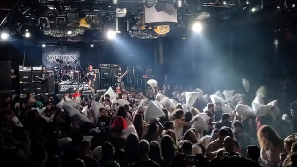 Even kennismaken: Origin. Een technische deathmetalband uit Amerika, die dit jaar mee mocht op de 70.000 Tons of Metal cruise, een metalfestival op een cruiseschip. In 2015 stonden ze daar ook al, en toen werden ze bijna de boot afgetrapt omdat ze totale chaos veroorzaakten. Waarom? Ze riepen iedereen op om een kussengevecht in de moshpit te starten, en dat verliep zoals verwacht.