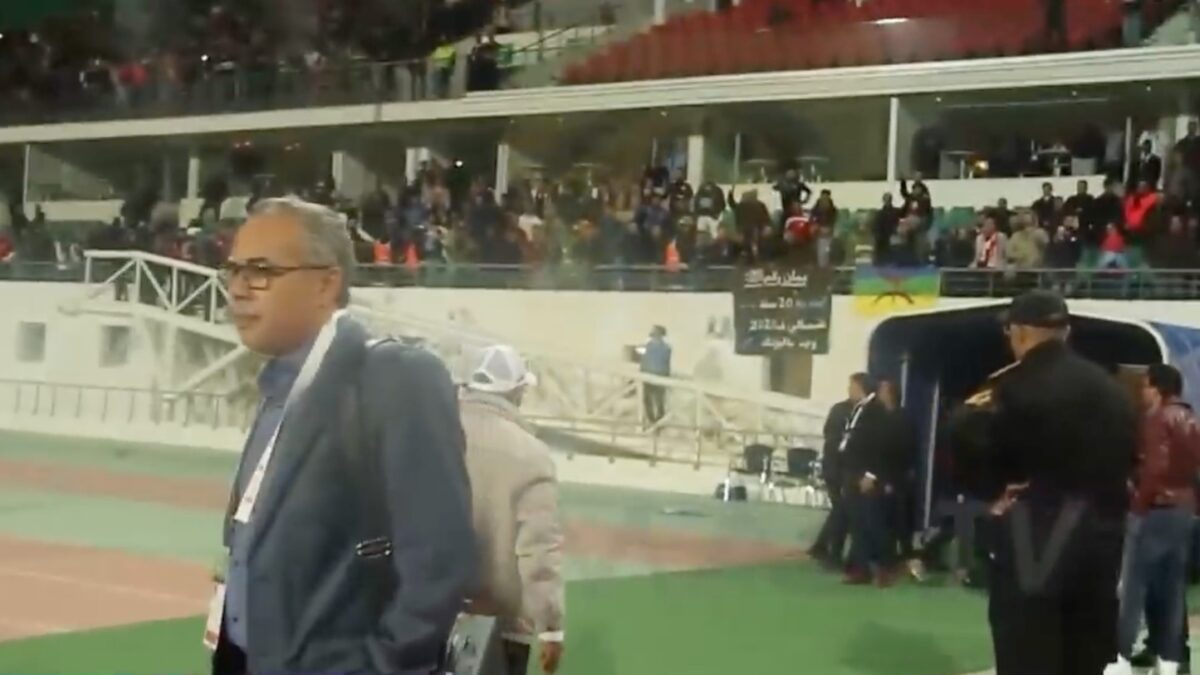 Marokkaanse coach M'hamed Fakhir krijgt steen tegen zijn hoofd en gaat gestrekt