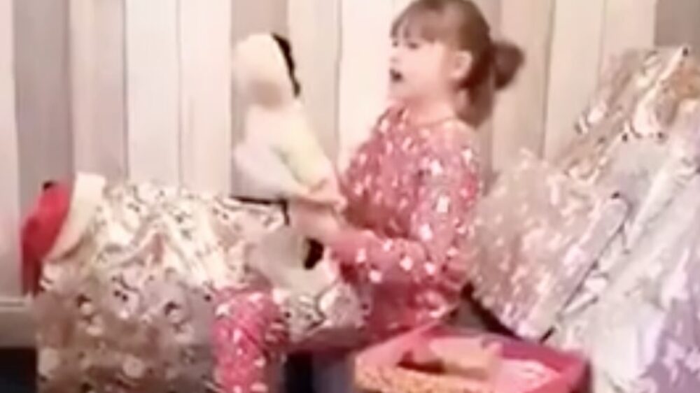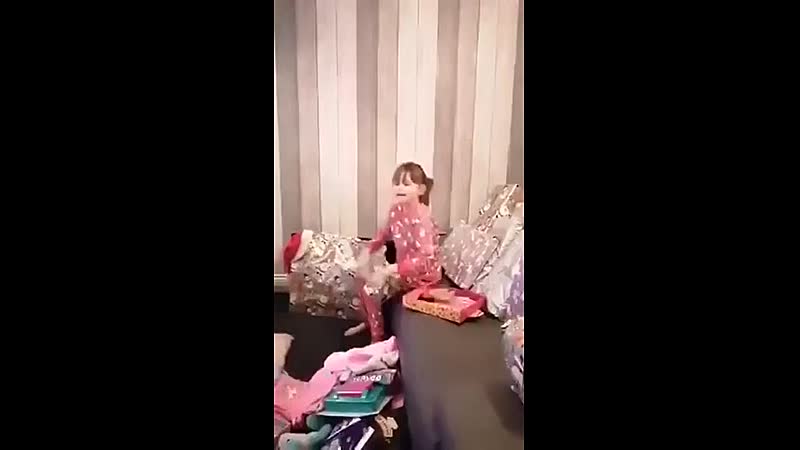 Jarig meisje moet nog even wennen aan haar nieuwe pop Random