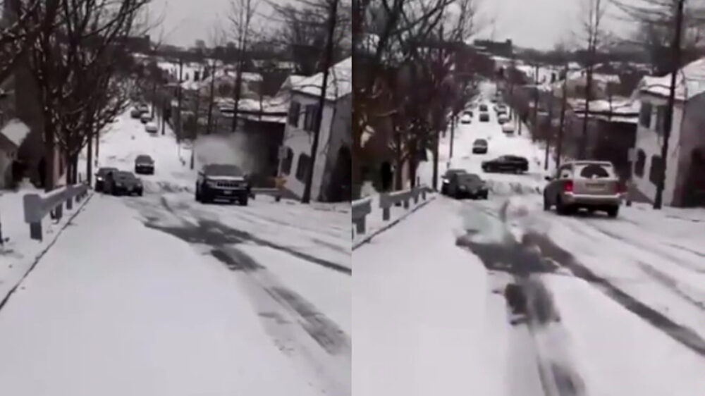 Als die hele steile straat ook nog eens spekglad blijkt te zijn
