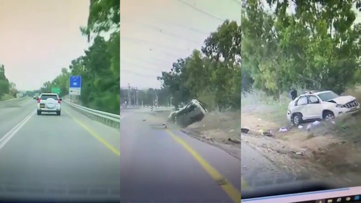 Auto maakt keurige koprol nadat 'ie door tegenligger van de weg wordt gesneden