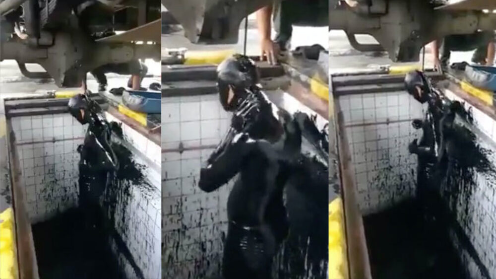 Altijd even goed douchen na een dagje hard werken in de garage