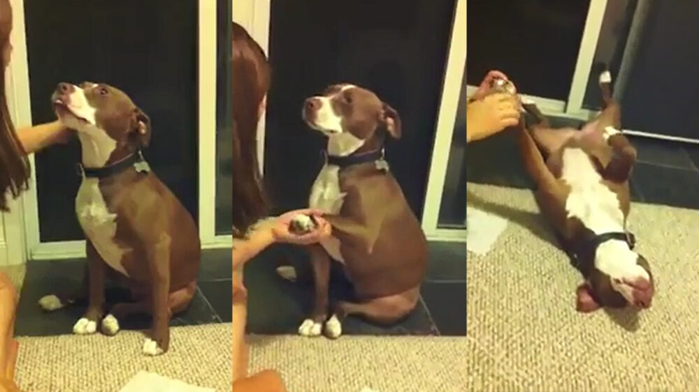 Superdramatische hond doet net of hij flauwvalt als zijn nagels worden geknipt