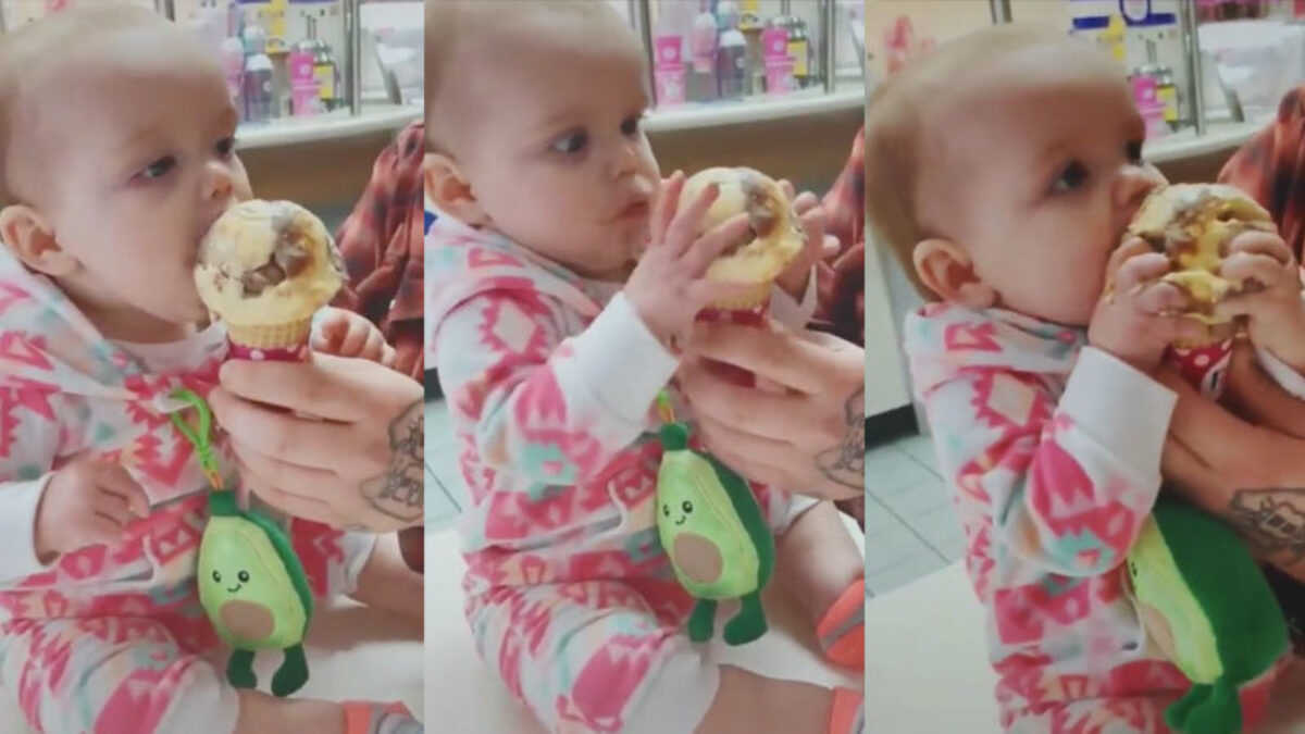 Baby geniet keihard van het allereerste ijsje dat ze in haar leven eet