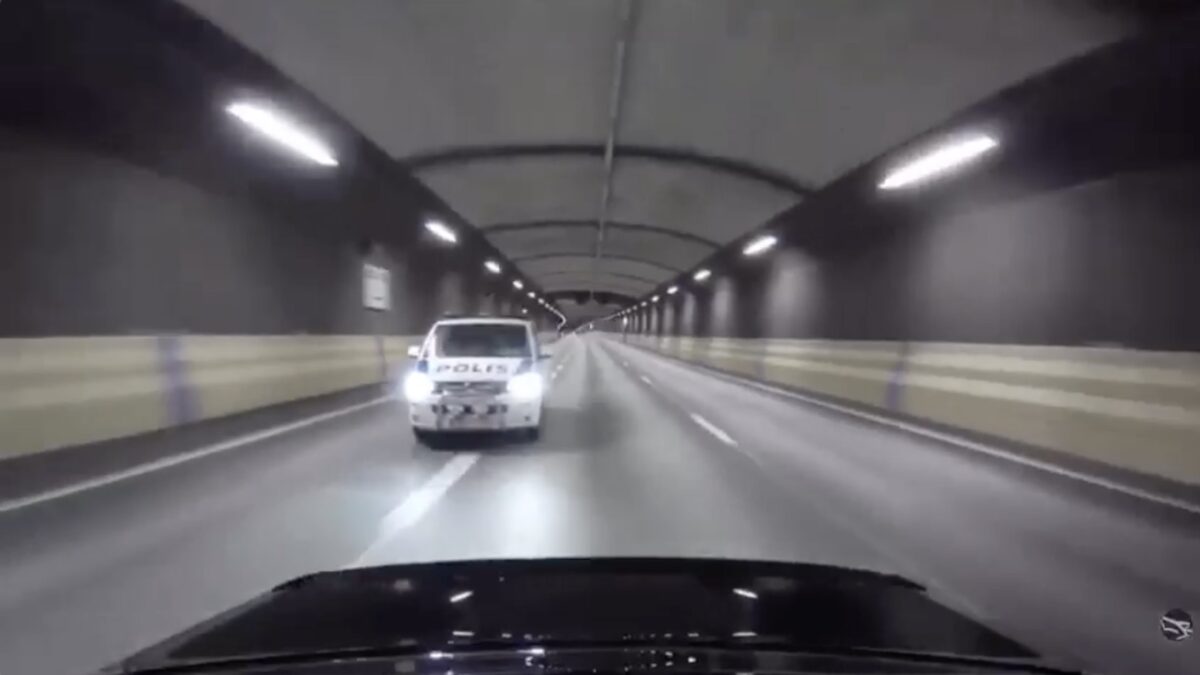 Gezien de tekst op de auto van ome agent zou het best ergens in Zweden kunnen zijn geweest, maar zou iemand Speedy Gonzales niet even moeten vertellen dat je ook via je kenteken op te sporen bent? (Of zou 'ie ook daar aan hebben gedacht?)