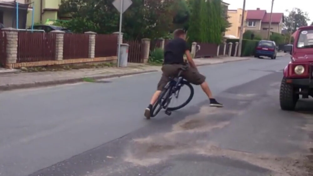 Is natuurlijk ook wel aantrekkelijk als je een steil aflopende straat tegenkomt: er met een noodgang met je fiets afjakkeren en kogeltjehard de bocht om gaan. Wel een slecht moment om erachter te komen dat je met je fiets ook kunt driften.