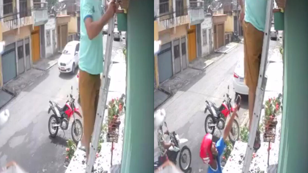 Nu kan op een ladder klimmen an sich al best gevaarlijk zijn, maar in Brazilië is dat om een compleet andere reden: je wordt daar rustig beroofd van al je spullen. Toegegeven, het is wel een knap geniale vondst. Geef me je geld of ik trek die ladder onder je vandaan.