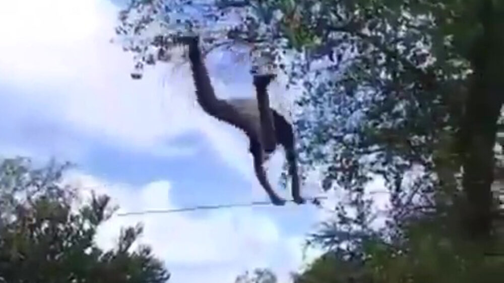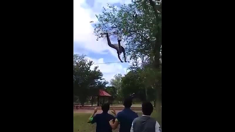 Faalhaas laat zich dankzij een touw knap hoog lanceren Fails