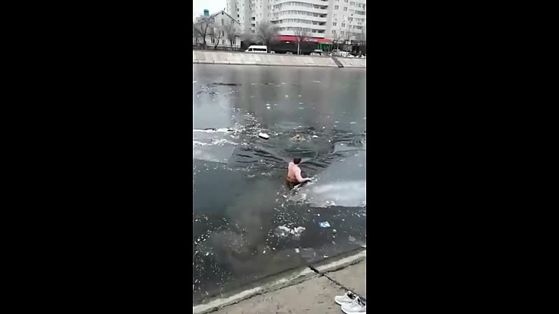 Het Russische gezinnetje dat aan de kant stond zag ineens hun jonge hond in het ijskoude water liggen, maar gelukkig was er een ongelooflijke eindbaas die niet nadacht en zo het water instapte om het beestje te redden. Niet elke held draagt een cape.