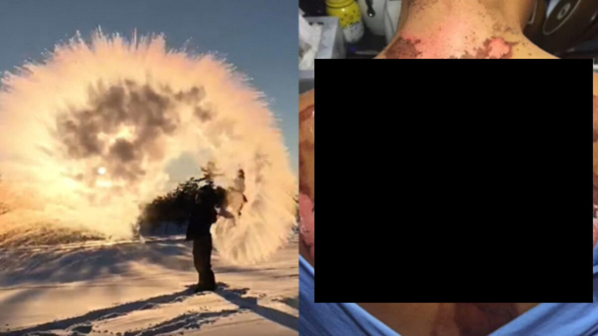 Het ziet er mooi uit als je kokend water in de lucht gooit terwijl het buiten hard vriest. Zorg er alleen voor dat je niet teveel water boven je hoofd gooit, want dat kan best wel pijnlijk zijn 😱