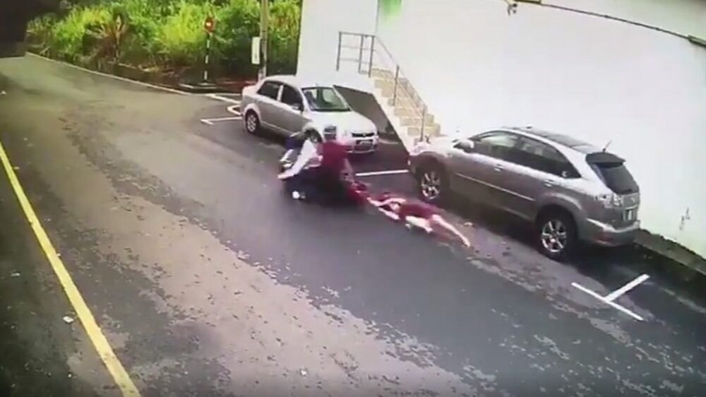 Maleisische taaie tante laat d'r handtasje niet zomaar jatten